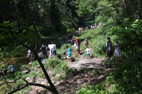 Enter the scenic area from the Forest Park Ticket Station and start a 3-4 hour hiking trip along Jinbian Stream. This "Wizard of Oz"-like valley connects many wonderful sceneries: the 380-meter-high Jinbian Rock, with the Shenying Hubian Peak standing beside it as a counterpart. Walk on the bluestone slab road along the way, watch the clear water of Zicao Pond reflecting the peaks, encounter the "Thousand-Mile Meeting" rock peaks that seem to convey affection, and immerse yourself in the freshness of this natural oxygen bar. At the end point, Shuirao Simen, four streams converge, surrounded by peak forests, presenting beautiful scenery.